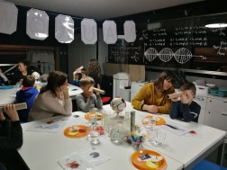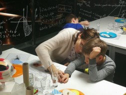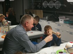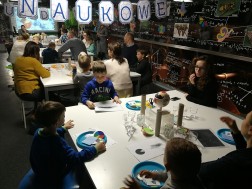 Uczestnicy mogli się również dzisiaj poczuć niczym Leonardo da Vinci. Przy użyciu lusterka odczytali oni specjalnie skryte hasło. Oprócz tego używając szklanki z wodą oraz bagietki i gliceryny wykonano eksperyment wyjaśniający zasadę załamywania się światła.