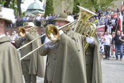 Po Mszy Świętej, w której wzięły udział tłumy wiernych, uczestnicy uroczystości przeszli na plac przed Muzeum Narodowym w Kielcach. Tam odśpiewano hymn państwowy.