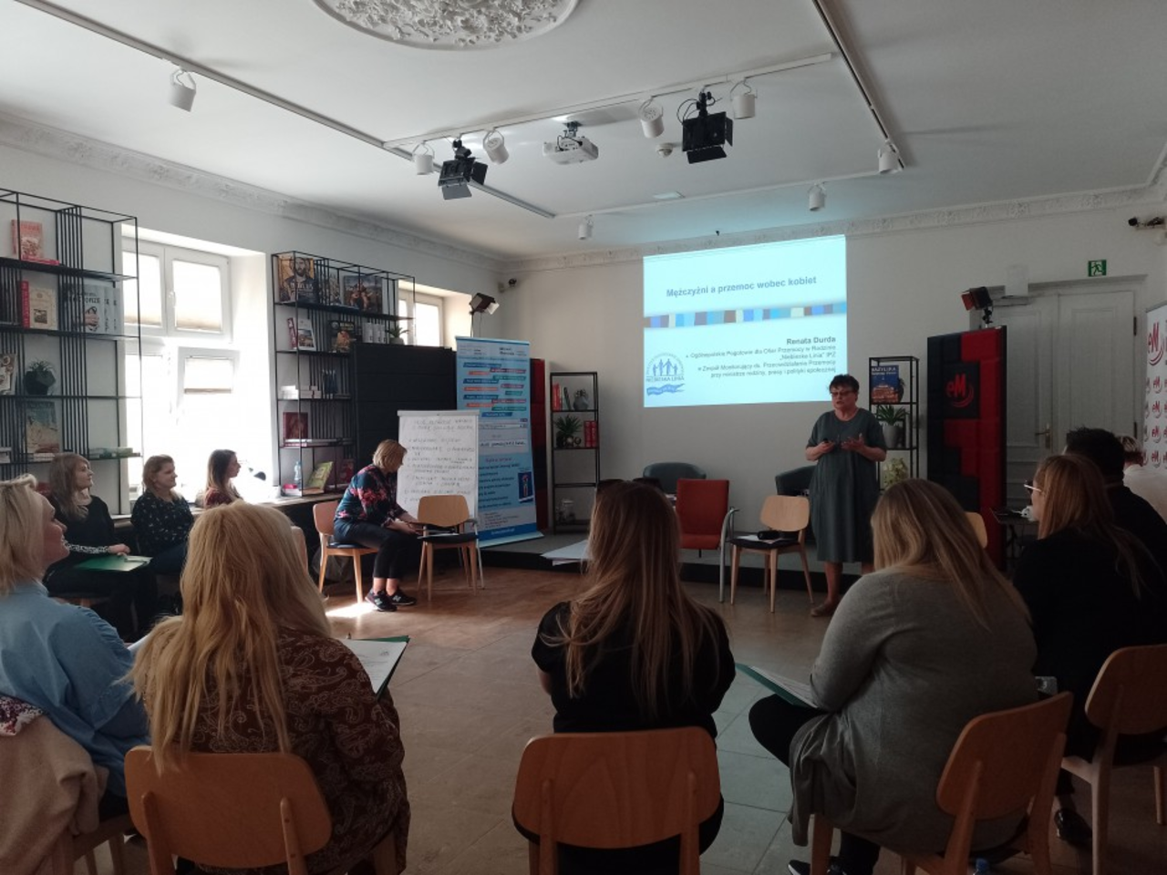 Dziś (14 kwietnia) dobiegła końca druga część 4-dniowej sesji poświęconej pracy z osobami stosującymi przemoc. W szkoleniu wzięło udział 15 uczestników, zarówno z Kielc jak i z innych miast województwa świętokrzyskiego. Są to ludzie, którzy na codzień spotykają się z problemem przemocy, np. pracownicy szkół, ośrodków pomocy społecznej,