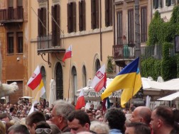 9 - Rzym - Piazza Navona- Ukraińska flaga wśród polskich