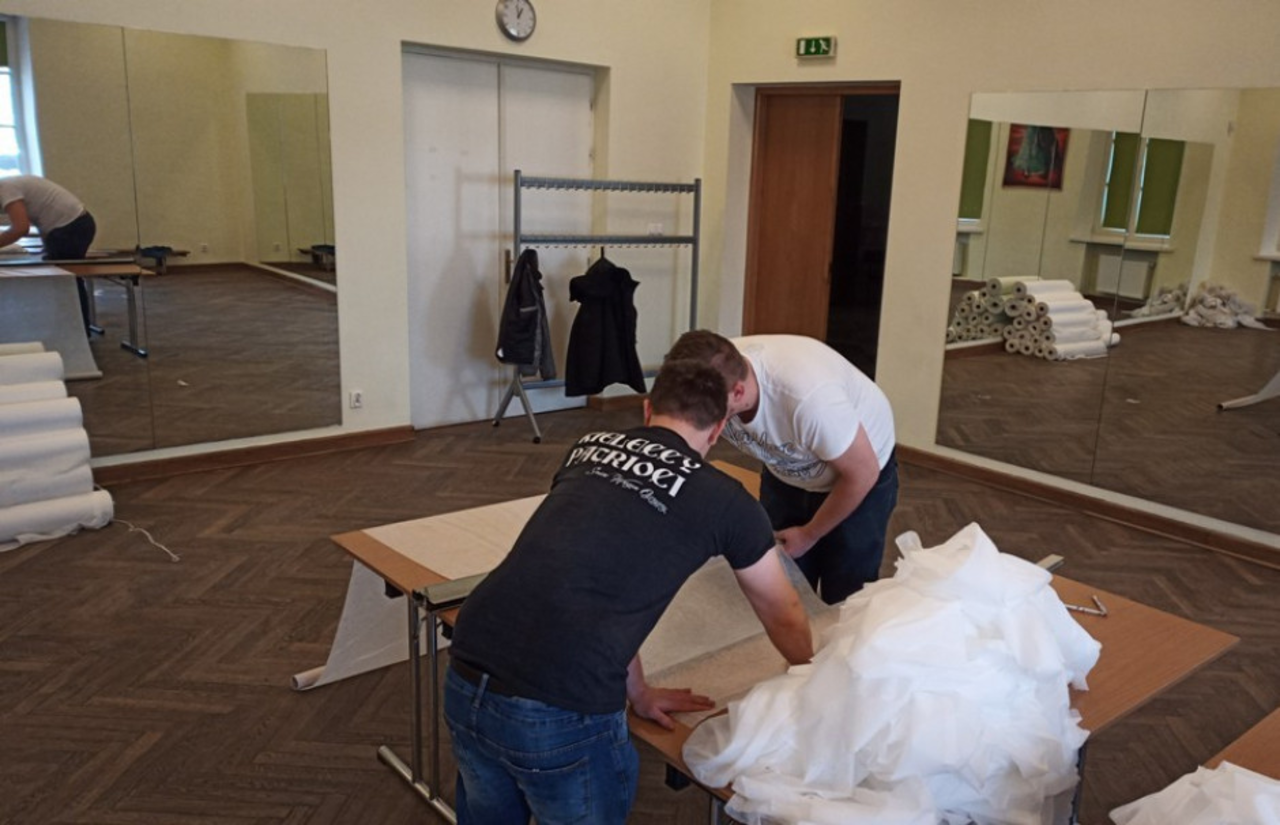Kieleccy Patrioci pracują w budynku Wojewódzkiego Domu Kultury w Kielcach. Ma tu zostać wykonanych kilkaset fartuchów i około dwóch tysięcy czepków. – W tym momencie ścinamy i zszywamy materiał, który mamy. Pomagają nam też inne osoby. Współpraca układa się świetnie. Apelujemy również o datki pieniężne na większą ilość materiału, bo z pewnością będzie on potrzebny. Zapraszam do śledzenia naszego fanpage’a na Facebooku – mówi Mateusz Machnicki.