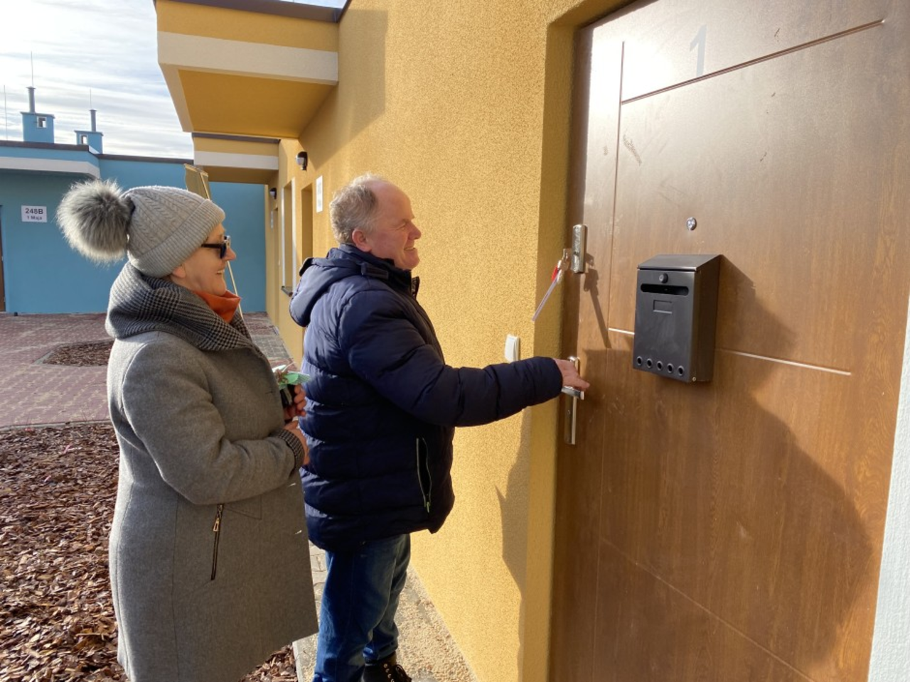 Wśród osób, które na dwa dni przed końcem 2022 roku odebrały od prezydenta Bogdana Wenty klucze do nowego mieszkania są państwo Lasek.