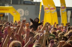 Kilka tysięcy młodych osób bawiło się na dachu Galerii Korona w drugiej edycji Festiwalu Kolorów. O umówionych godzinach tłum wyrzucał saszetki z kolorowym proszkiem, co tworzyło rewelacyjny efekt kolorowej mgły.