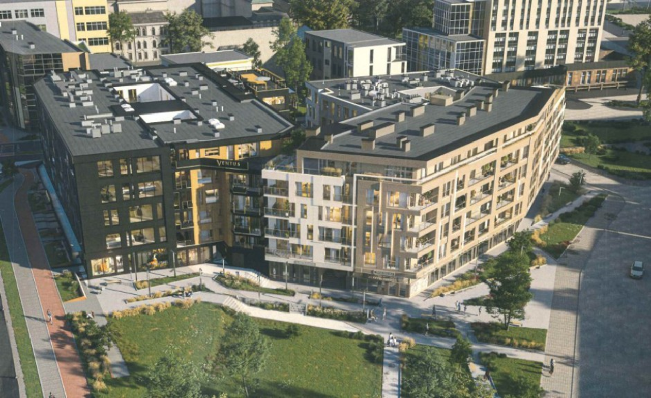 Przypomnijmy, że głównym założeniem projektu jest wypełnienie przestrzeni pomiędzy dwoma istniejącymi budynkami – Ventus i Apollo Split. Blok z usługami i garażem ma zostać dobudowany do dwóch ścian szczytowych jako kontynuacja fasad.