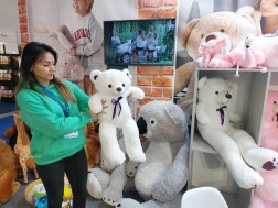 – Pokazujemy pluszowe misie. Specjalizujemy się w tych szczególnie dużych, które mają nawet 3,5 metra. Są jednorożce, pandy, króliki, żyrafy. Jest w czym wybierać. Pojawiło się w ostatnim czasie wiele nowości, ale to te tradycyjne maskotki cieszą się największym zainteresowaniem. Mamy też coraz popularniejsze misie z płatków róż, idealne na walentynki czy Dzień Kobiet. To pamiątka na lata – mówi nam Emilia Ciechulska z firmy Miś Gustaw.