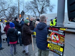 – Śpieszę się do domu, kończy mi się czas pracy, a muszę stać w korku, bo ktoś sobie protestuje. Ci mieszkańcy nie chcą tej drogi, a my, kierowcy, bardzo chcemy, bo obecnie przejechać przez Kielce to tragedia. Powinna powstać ekspresówka, ale i jakaś obwodnica Kielc, bo to chyba jedyne miasto, w którym jeździ się po takich dziurach – mówi pan Dariusz, kierowca tira.