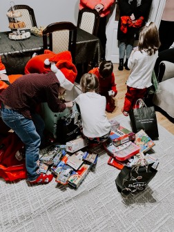 Każde dziecko otrzymało torbę wypełnioną po brzegi słodyczami. Nie zabrakło też ogromnej paczki z różnymi zabawkami i grami.