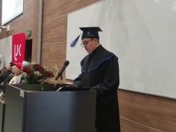 – Dyplomy, które dziś otrzymacie, z jednej strony stanowią formalne potwierdzenie uzyskania absolutorium, a z drugiej są okazją do pewnej refleksji nad tym, jak te lata studiów przeżyliście i spożytkowaliście. Zdobyliście pewien zasób wiedzy udokumentowanej dyplomem, lecz trzeba sobie w życiu wytyczać nowe cele. Miejcie zatem motywację do dalszej nauki, zadawania pytań, wykonywania pracy lekarza z zamiłowania, z wyobraźnią i pasją. Pamiętajcie o takich wartościach jak tolerancja, troska o zdrowie i dobrostan drugiego człowieka, empatia, przyzwoitość, odwaga – podkreślała rektor.
