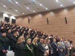 – W tym wyjątkowym wydarzeniu oprócz absolwentów, władz wydziału i uczelni są z nami przede wszystkim rodzice, dziadkowie oraz najbliżsi naszych studentów. To jest właśnie ich święto – zaznaczył dr hab. n. med. Przemysław Wolak, prof. UJK, dziekan kierunku lekarskiego na kieleckiej uczelni.