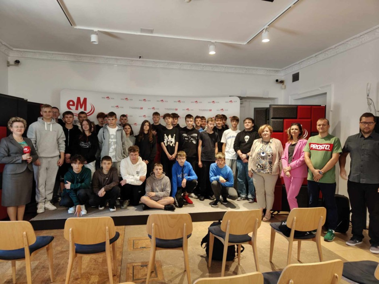 O Radiu eM Kielce, jego historii i rozwoju opowiedziała zgromadzonym młodym ludziom Katarzyna Bernat. Mogli oni dowiedzieć się jak przez lata zmieniała się nasza rozgłośnie i jak wykorzystuje obecnie najnowocześniejsze narzędzie związany z mediami.