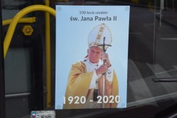 Wizerunek św. Jana Pawła II na przedniej szybie każdego autobusu – to pomysł Miejskiego Przedsiębiorstwa Komunikacji w Kielcach na uczczenie setnej rocznicy urodzin papieża Polaka. Akcja rozpoczęła się w sobotę i potrwa do poniedziałku.