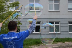 – Oprócz śpiewania piosenek puszczaliśmy bańki, przynieśliśmy balony z helem, na których napisaliśmy imiona dzieci i przyczepiliśmy na drzewach przed oknami – tłumaczy Damian Zegadło, koordynator Diecezjalnego Centrum Wolontariatu.