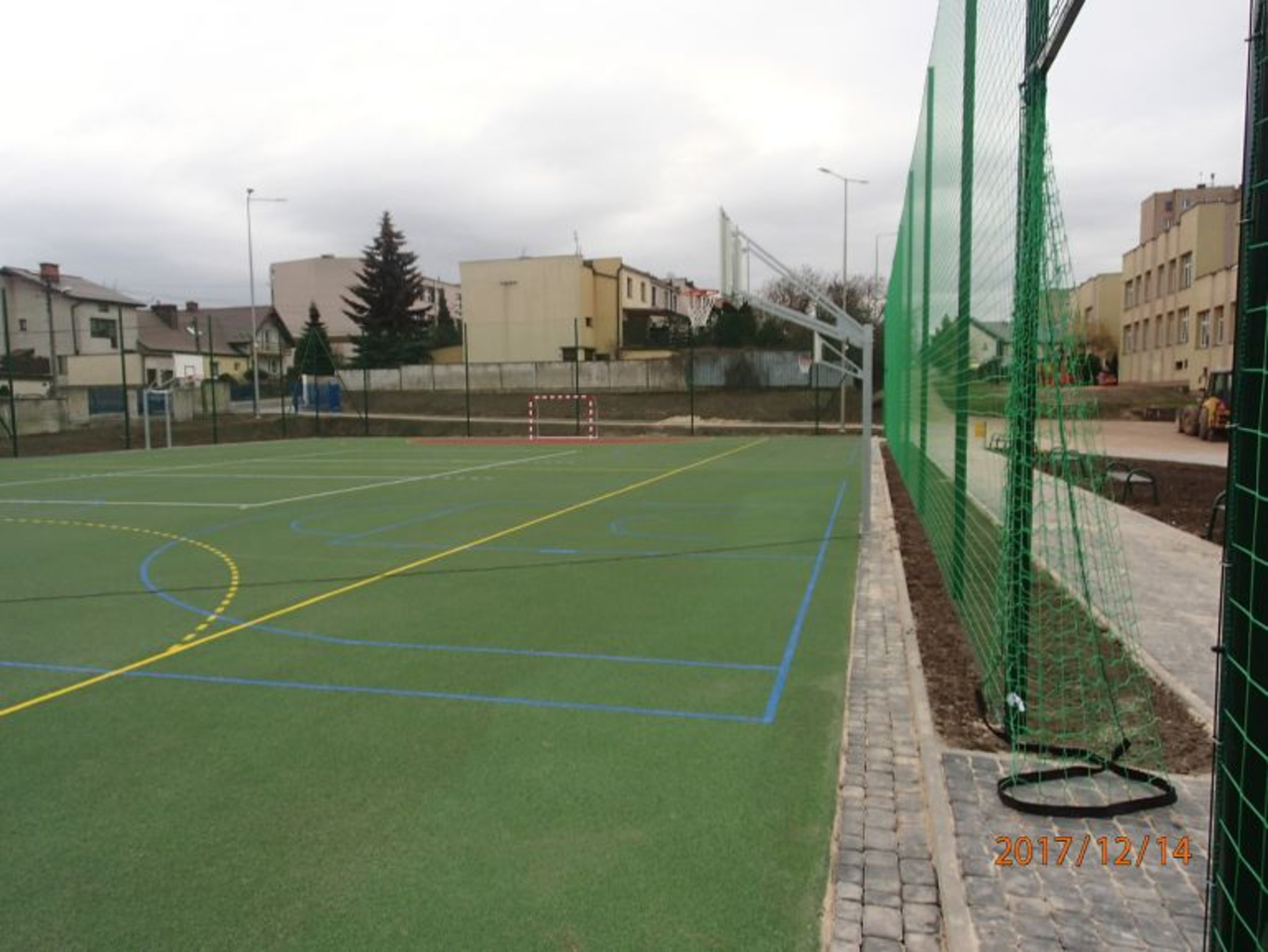 Jedno boisko służy do gry w piłki ręcznej, koszykówki i siatkówki, natomiast drugie do koszykówki i minisiatkówki. Wybudowano ciągi piesze oraz komunikacyjne. Wykonano ponadto system odwodnienia, ogrodzenie w okolicy wjazdów na teren działki, instalację wodociągową i oświetlenie. Teren wokół boisk został wyrównany i wyposażony w ławki oraz kosze na śmieci. Obiekt jest monitorowany. - Do tej pory warunki były fatalne. Dzieci nazywały to miejsce nie boiskiem a pastwiskiem. Nawierzchnia była trawiasta, grunt podmłokły, także po każdym deszczu robił się staw i wiosną można było tutaj spotkać kaczki - informuje Anna Górska.