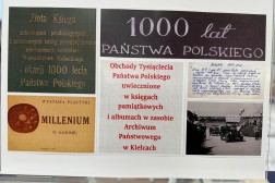 Spotkaniu ze źródłem archiwalnym towarzyszyła prezentacja okolicznościowej wystawy „Obchody Tysiąclecia Państwa Polskiego uwiecznione w księgach pamiątkowych i albumach znajdujących się w zasobach kieleckiego archiwum”.
