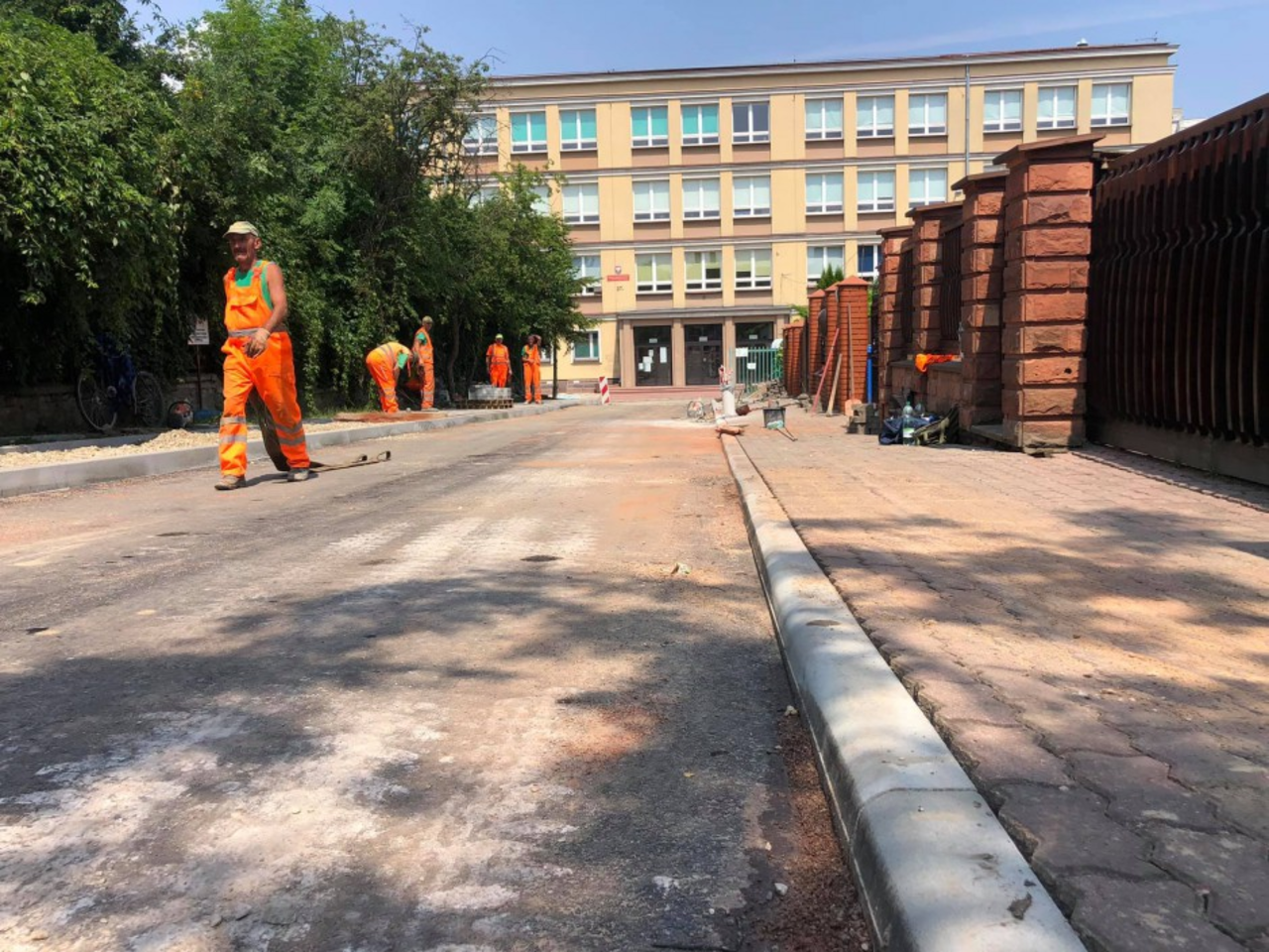 Przed Szkołą Podstawową nr 13 im. Władysława Jagiełły zlokalizowaną przy ul. Prostej w Kielcach trwają roboty budowlane.