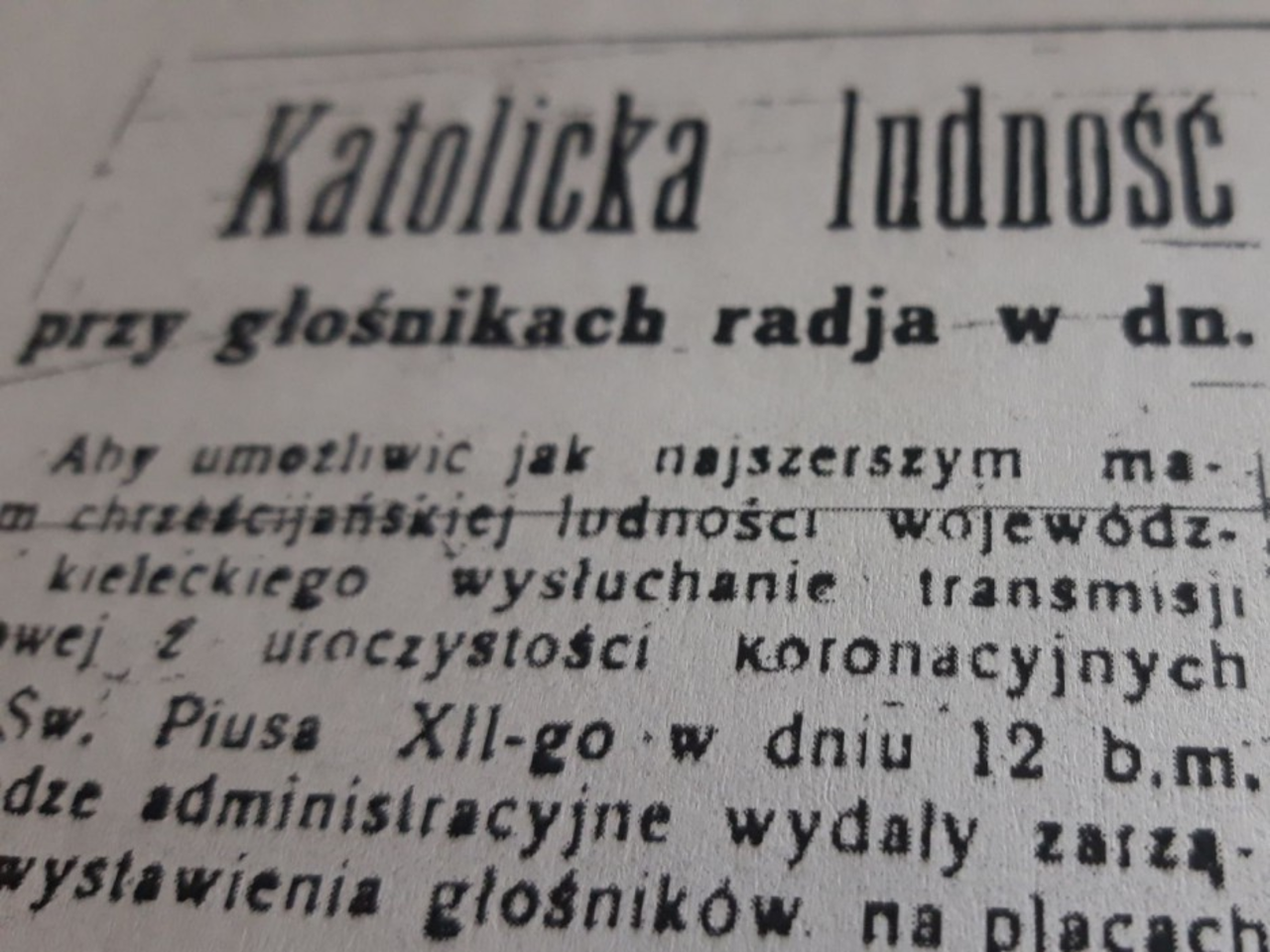 Wróćmy do „Gazety Kieleckiej”, która w 1939 roku mówi o radiowej transmisji z koronacji Piusa XII i ogłasza sukces naszych bokserów i inne, mniej pozytywne informacje.