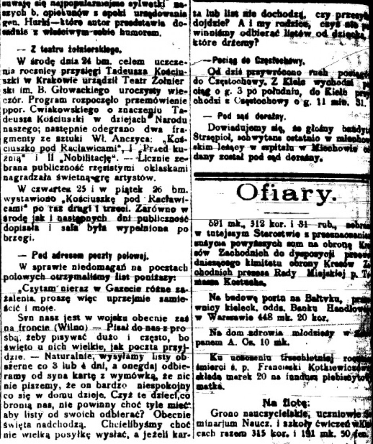 W 1920 roku, podczas wojny polsko-bolszewickiej, "Gazeta Kielecka" zamieszcza list rodziców jednego z żołnierzy.