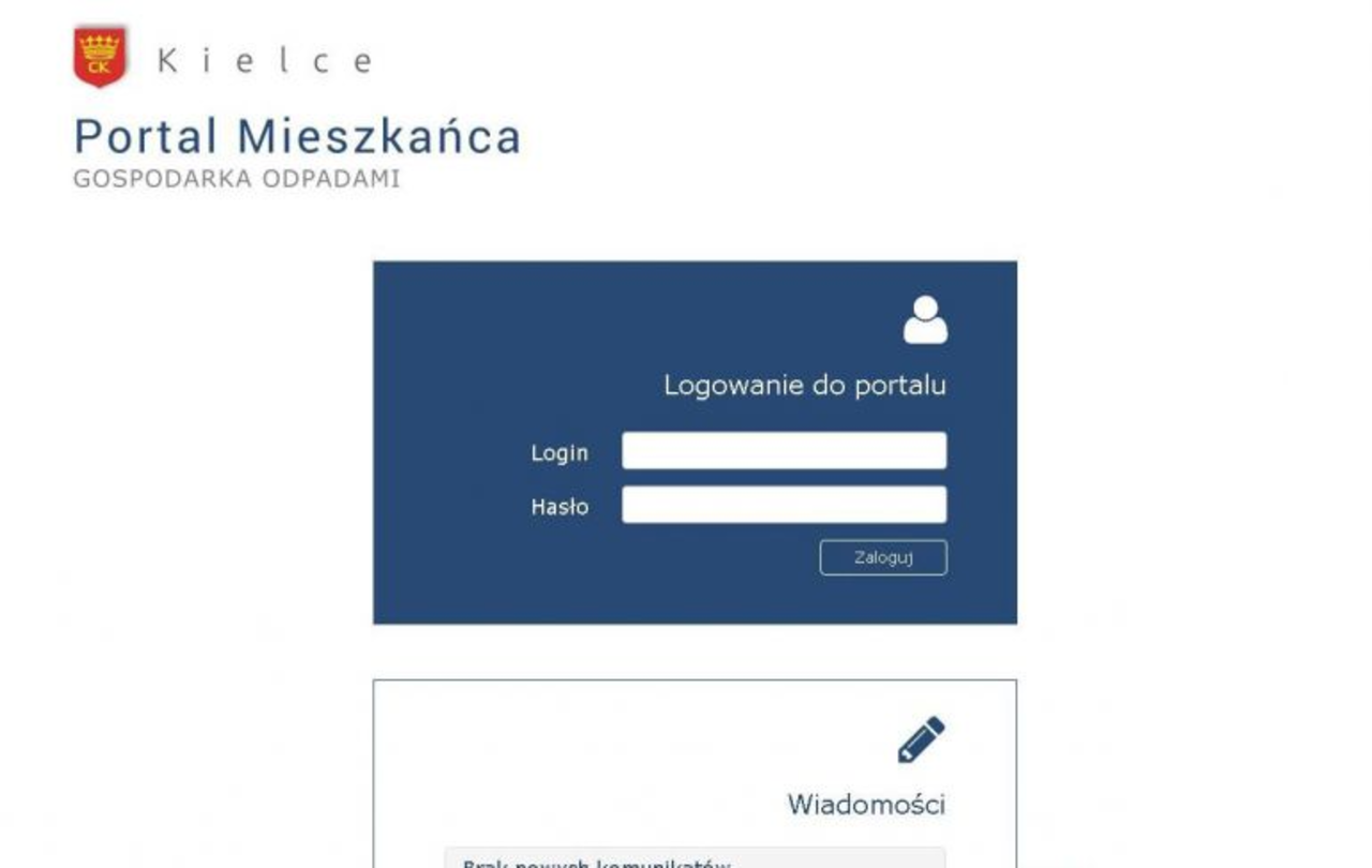Strona dostępna jest pod adresem https://odpady-komunalne.kielce.eu/login. Loginem jest pesel lub nip właściciela nieruchomości, natomiast hasłem pięć ostatnich cyfr numeru rachunku bankowego.