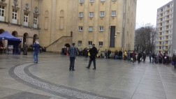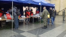 Niestety, nie można było tym razem zasiąść przy wspólnym stole w murach WDK. Ale na pobliskim placu rozstawiono specjalny namiot, w którym wydawano wigilijne posiłki.