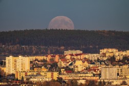 Początek superpełni księżyca można było obserwować w Kielcach np. ze wzgórza Karczówka. Z tej perspektywy księżyc pojawił się nad podkieleckimi lasami i osiedlami z północy miasta: Uroczysko, Na Stoku, Świętokrzyskie.