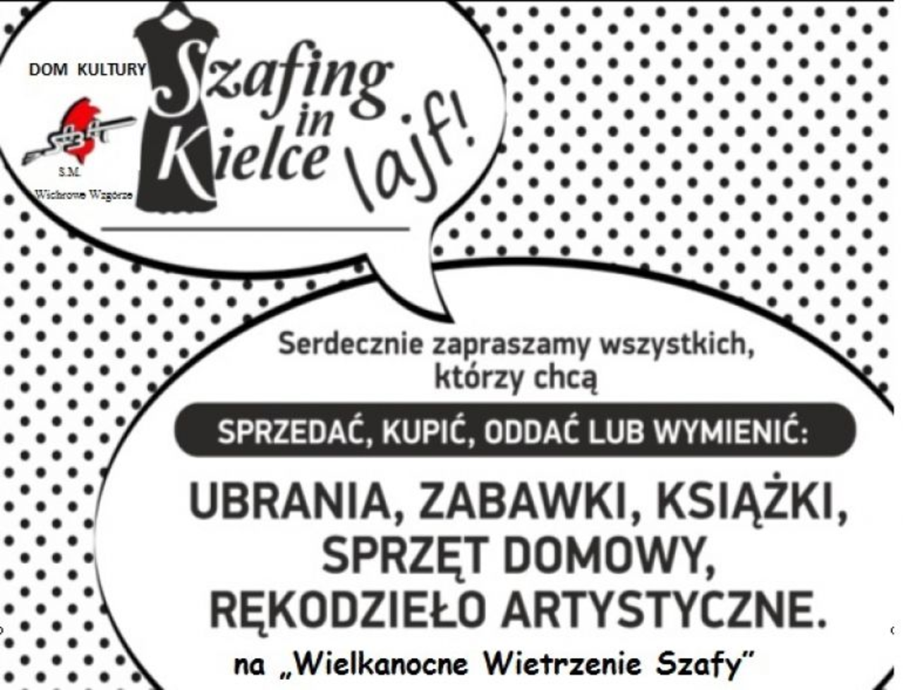 Szafing od kilku lat zdobywa popularność w wielu miastach, dlaczego inaczej ma być w Kielcach? Już w sobotę, 8 kwietnia każdy kto chce sprzedać, kupić, oddać lub wymienić ubrania, zabawki, książki, sprzęt domowy czy rękodzieło artystyczne może to zrobić. Wystarczy wcześniej zarejestrować się drogą mailową pod adresem kontakt@dksabat.pl.
