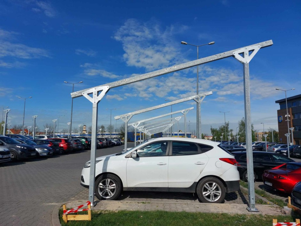 Widać już pierwsze efekty prac nad powstającą przed budynkiem Starostwa Powiatowego w Kielcach instalacją fotowoltaiczną. Panele pojawią się na zadaszeniu parkingu.