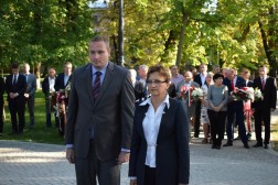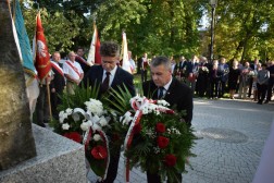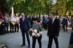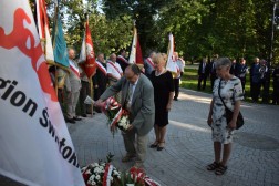 Po nabożeństwie uczestnicy uroczystości udali się przed pomnik bł. ks. Jerzego Popiełuszki patrona Solidarności, gdzie złożyli kwiaty.