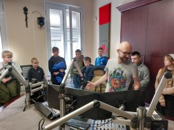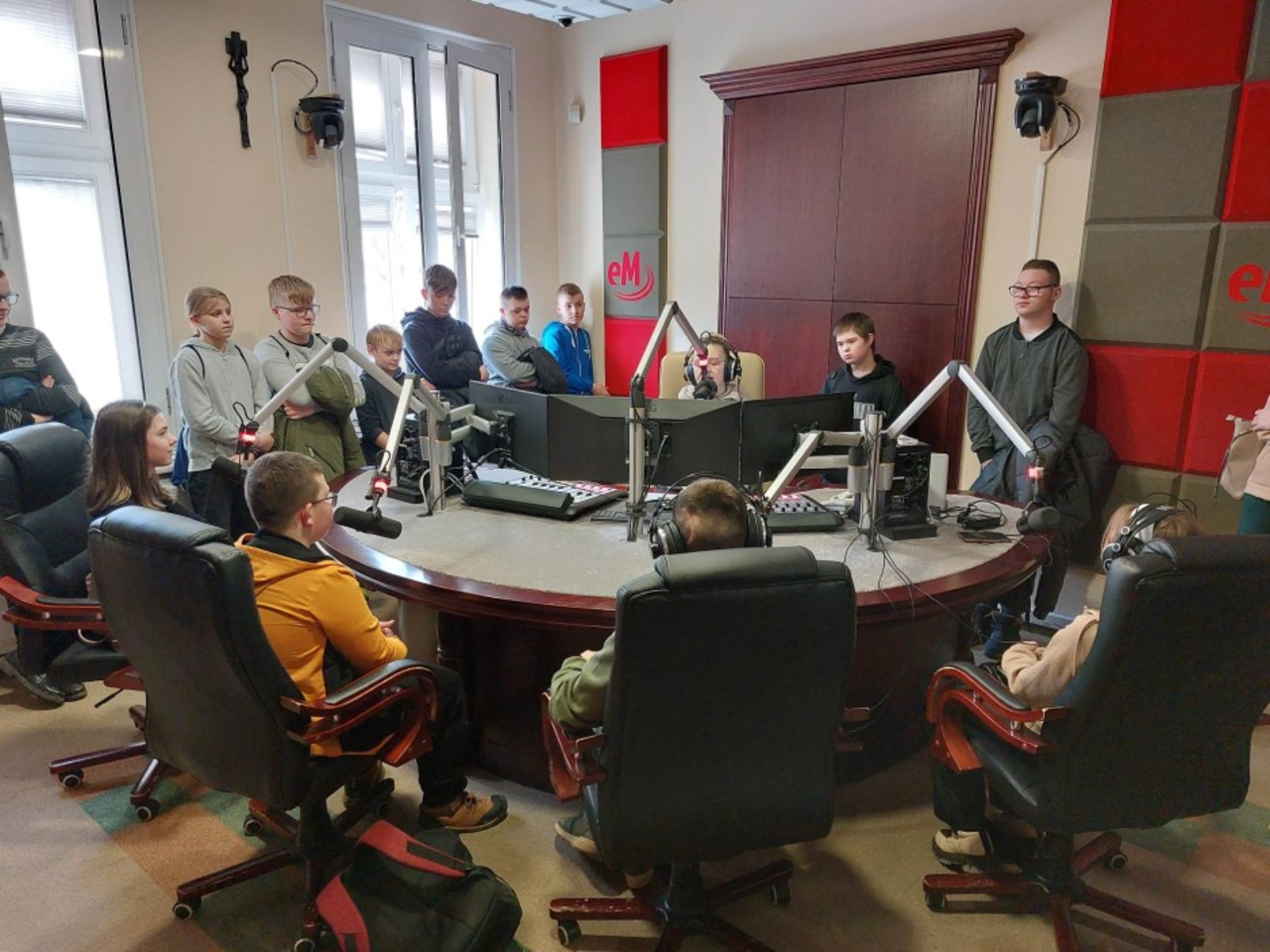 Byli zainteresowani nagraniami, pisaniem artykułów, ale przede wszystkim rozmową na żywo. Na początku odbyli krótkie warsztaty z Piotrem Zawadzkim i Michałem Łosiakiem. Później przyszła pora na rozmowę z naszą prezenterką, Olą Niemczyk, podczas której opowiadali między innymi o pięknych miejscach w gminie Piekoszów.