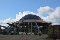 Rozpoczęły się też roboty drogowe oraz montaż instalacji sanitarnych. Zgodnie z planem, do końca października powinna być wykonana elewacja zewnętrzna i poszycie obu kopuł. W ramach inwestycji powstanie także 80 miejsc parkingowych.