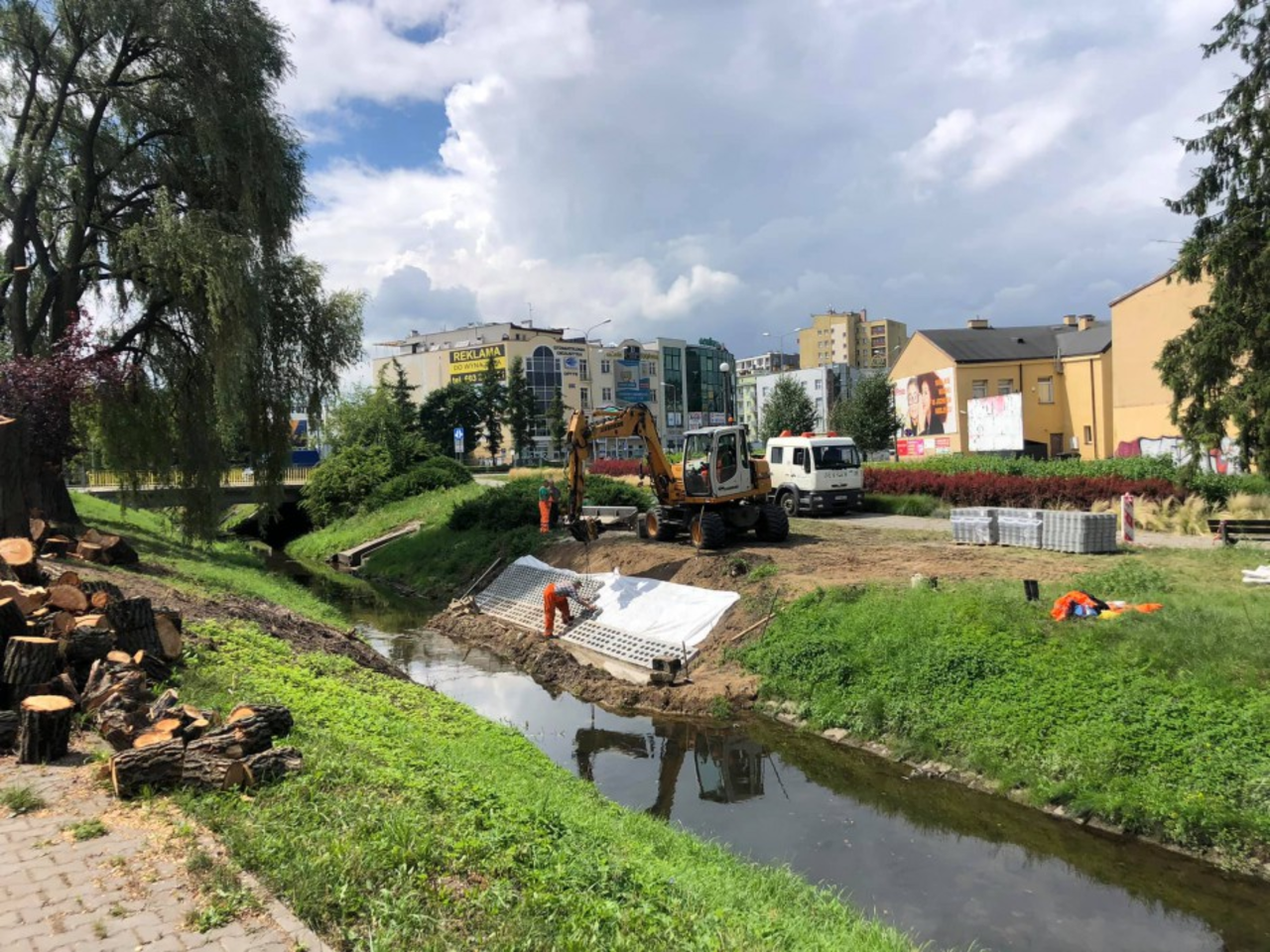 Pracownicy Rejonowego Przedsiębiorstwa Zieleni i Usług Komunalnych odtwarzają skarpę w korycie Silnicy. Ta została zniszczona około dwa tygodnie temu - podczas wichury spadł na nią konar.