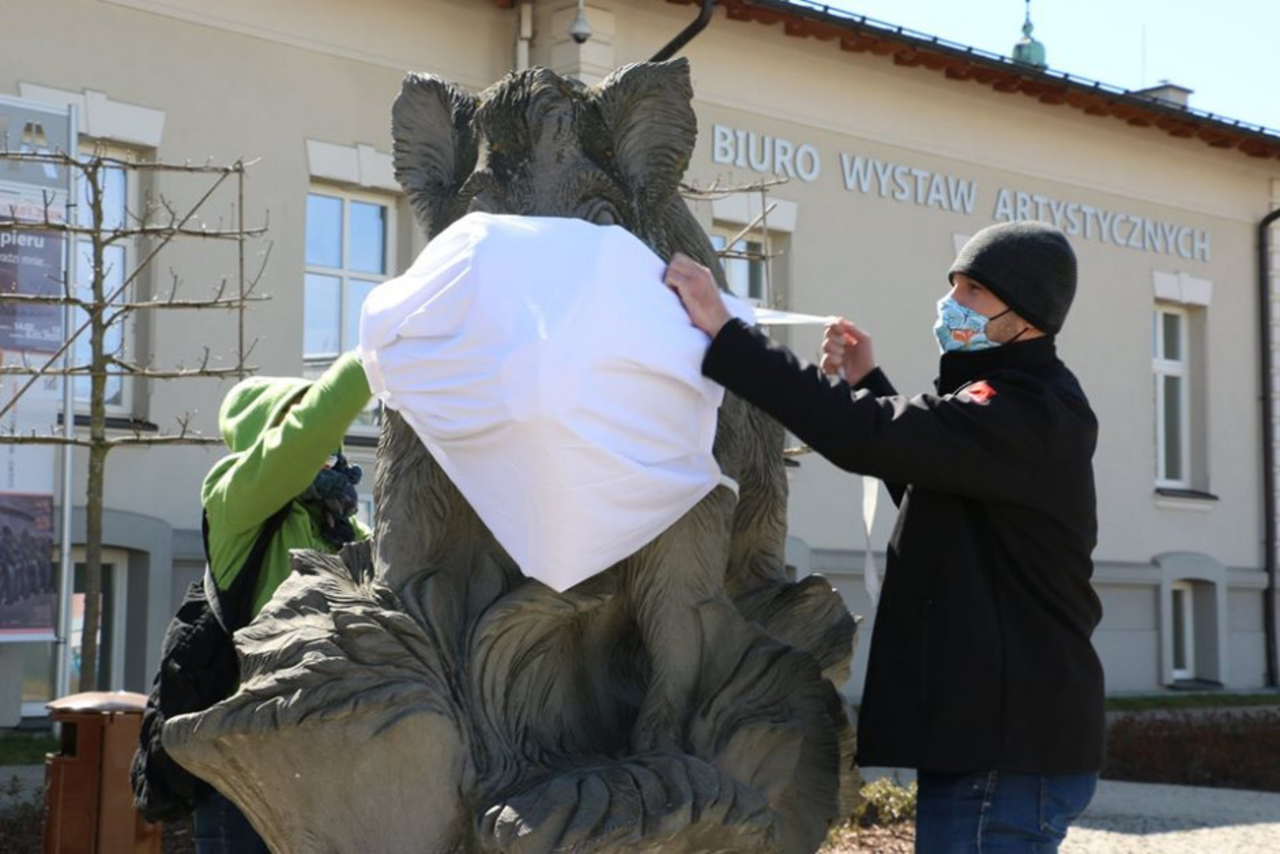 Od dziś w całym kraju obowiązuje obowiązek zakrywania twarzy w przestrzeni publicznej. Jak widać, kielczanie poważnie podeszli do zaleceń – zasłaniając nos i usta nie tylko sobie, ale i rzeźbom…