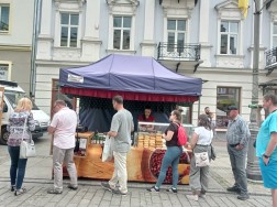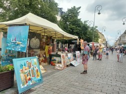 Wzdłuż deptaka ciągną się stragany, przy których możemy zakupić produkty rękodzielnicze, ale też wiele innych rzeczy (przykładowo, poduszki dostosowujące się do kształtu ciała, rozmaite rośliny, czy też kosmetyki) i pyszności. Jak co roku, dużym zainteresowaniem cieszą się oscypki – te z grilla, z żurawiną, jak i zwykłe. Przy jednym ze stoisk ustawiła się całkiem pokaźna kolejka chętnych na skosztowanie góralskich przysmaków.