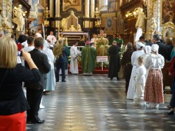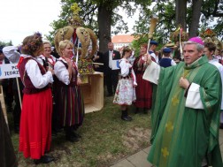 Podczas mszy świętej władze województwa przekazały biskupowi sandomierskiemu tradycyjne dary z tegorocznych zbiorów. Po liturgii ksiądz biskup poświęcił wieńce ze wszystkich powiatów naszego regionu. Następnie w kolorowym korowodzie uczestnicy dożynek przemaszerowali przez Sandomierz na miejsce uroczystości.