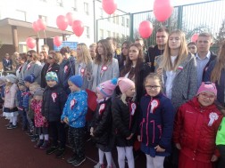 Wspólne odśpiewanie hymnu odbyło się w ramach projektu „Piękna Nasza Polska Cała”. Podczas uroczystości można było obejrzeć wystawę "Ojcowie Niepodległości", która prezentowana była przed szkołą.