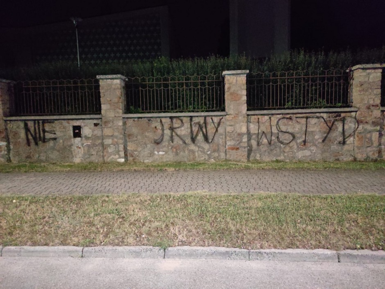 „Ktoś namalował na murze naszego kościoła taki napis (celowo wymazałem jego część, ale nie trudno się domyślić tego słowa). Pewnie napisałby więcej, ale spłoszył go ks. Łukasz. Osoba w dresie, na rowerze, mężczyzna. Smutne to i przykre” – napisał na Facebooku ks. Karol Starczewski, wikariusz parafii.