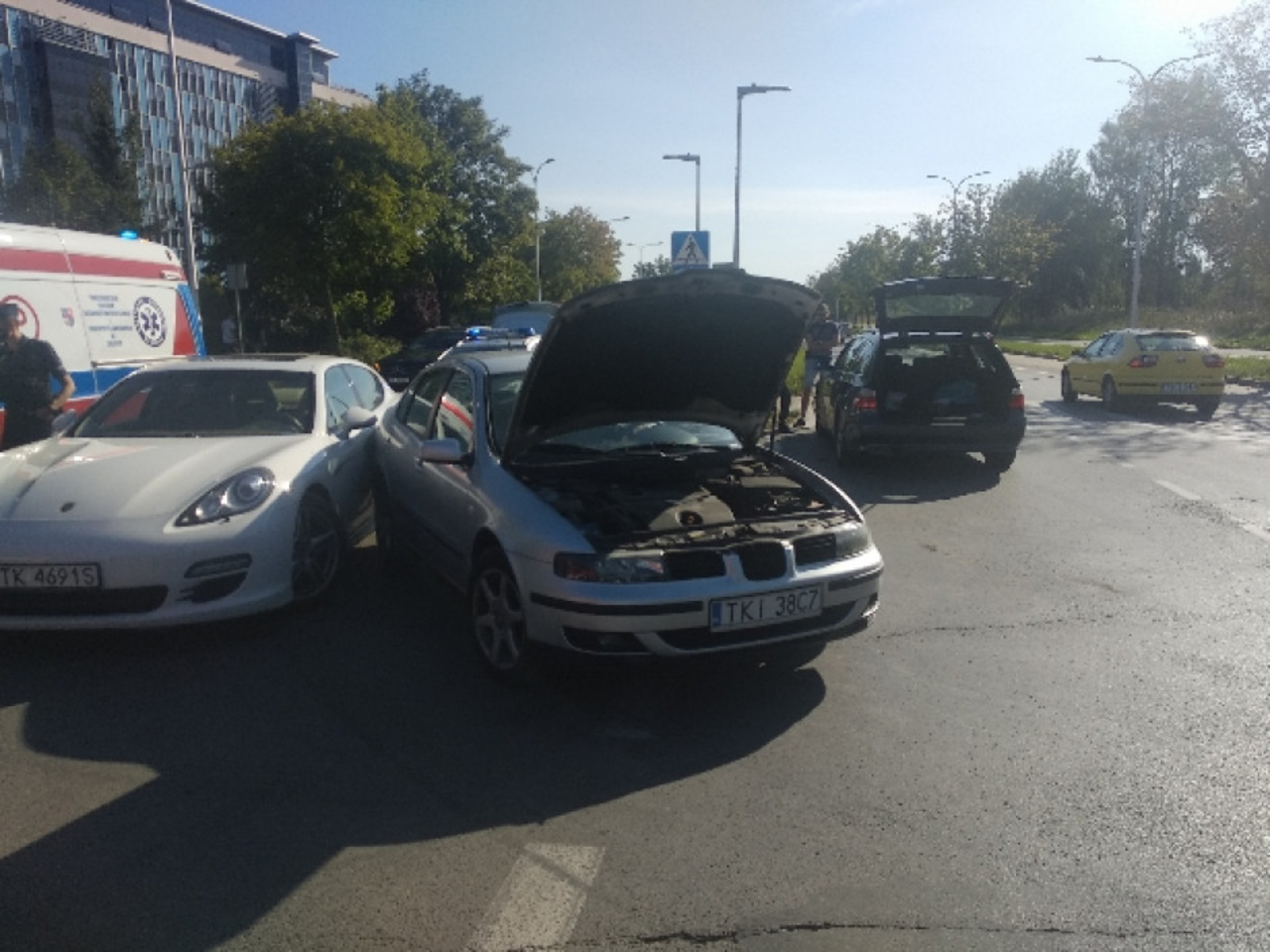 Jak mówi Karol Macek z Komendy Miejskiej Policji w Kielcach, do zdarzenia doszło około godziny 15. – Według wstępnych ustaleń 23-latka kierująca Seatem, wyjeżdżając z ul. Karczówkowskiej nie ustąpiła pierwszeństwa jadącemu Jagiellońską w kierunku MPK BMW, a następnie uderzyła w Porsche oczekujące na lewoskręcie – tłumaczy Karol Macek.