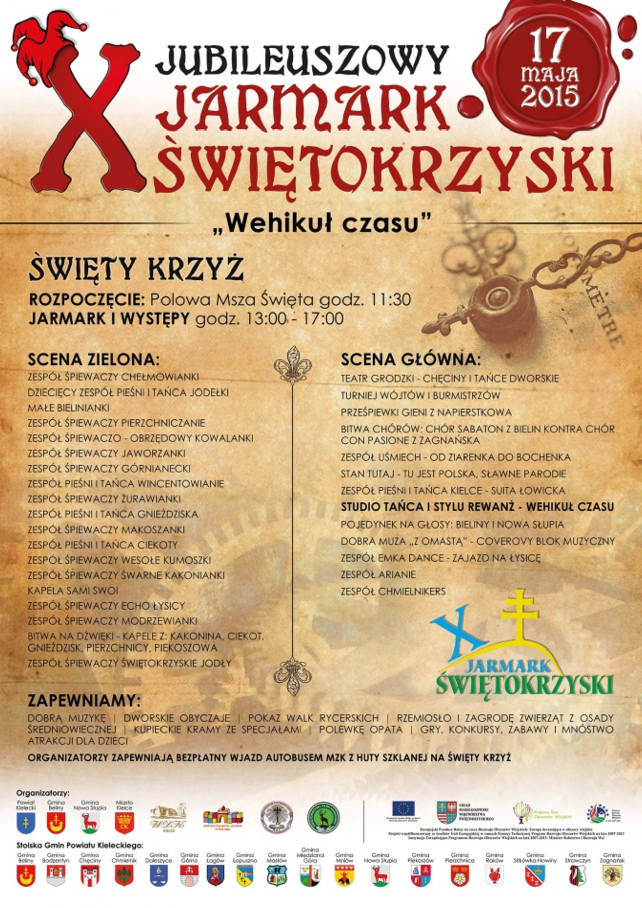 Już 17 maja na Świętym Krzyżu odbędzie się jubileuszowa edycja „X Jarmarku Świętokrzyskiego”. Hasło tegorocznego jarmarku to „Wehikuł czasu”. Będzie to wyjątkowe widowisko w lekkiej konwencji żartu, dowcipu i satyry oraz w klimacie tradycji średniowiecznej. Będą dwie sceny, na których zaprezentują się znakomici artyści. Na miejscu nie powinno zabraknąć żadnej rodziny z województwa świętokrzyskiego.
