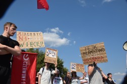 Podczas incydentu, Radomir M. i Aleksandra S. głosili hasła „Free Palestine”. Wczoraj (4 września) przed komisariatem policji przy ul. Wesołej w Kielcach odbył się protest aktywistów przeciwko zatrzymaniu wspomnianej dwójki. Podobna akcja miała miejsce dziś (5 września) przy Targach Kielce. Zdjęcia z propalestyńskiego protestu w galerii poniżej.