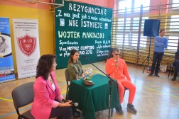 „Rezygnacja? Z nią jest jak z moim wzrokiem. Nie istnieje". Takie słowa padają w utworze „Igrzysk Czas”, który stworzył Wojciech Makowski, niewidomy pływak z Kielc, który kilka tygodni temu na Igrzyskach Paraolimpijskich w Rio de Janeiro wywalczył srebrny medal na dystansie 100 m stylem grzbietowym. Absolwent „Norwida” w piątek z młodszymi kolegami podzielił się swoimi wrażeniami z Igrzysk w Brazylii oraz opowiadał o latach spędzonych w kieleckim liceum. - Jest mi bardzo miło, że otrzymałem zaproszenie na takie spotkanie. To fajne uczucie kiedy ma się świadomość, że twoja była szkoła o tobie pamięta. Spędziłem tutaj wspaniałe trzy lata, dlatego z wielką przyjemnością wracam w mury „Norwida”. Mam nadzieje, że taka wzajemna współpraca zostanie podtrzymana - powiedział Wojciech Makowski.
