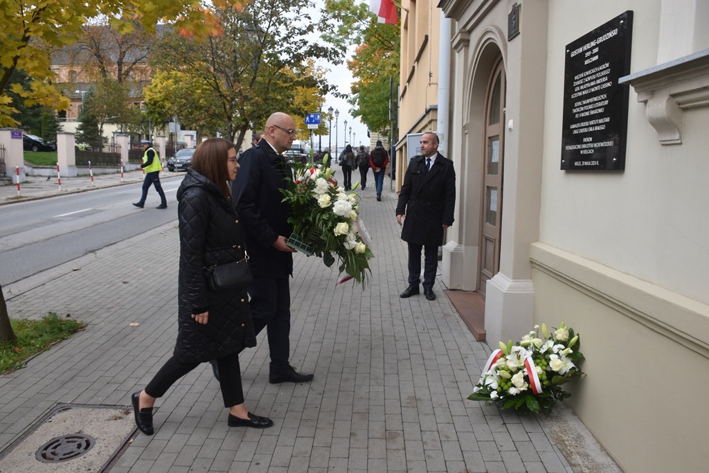 Później, uczestnicy przeszli przed gmach biblioteki, gdzie pod tablicą poświęconą Gustawowi Herlingowi-Grudzińskiemu złożyli kwiaty. Zwiedzili również okolicznościową wystawę „80 lat książnicy pedagogicznej w Kielcach”, która została otwarta 15 września.