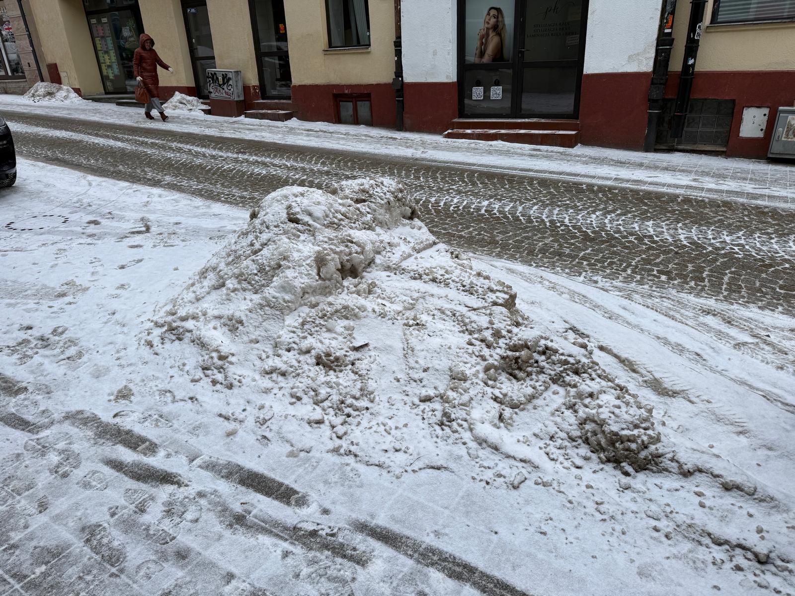 Hałdy starego, zmarzniętego śniegu zalegają na chodnikach. Mieszkańcy Kielc skarżą się na trudne warunki do przemieszczania się. RCB ostrzega: będzie ślisko.