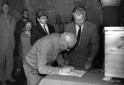 Niemal w tym samym czasie do organizatorów uroczystości zwrócili się przedstawiciele władz. Widząc zakrojone na szeroką skalę przygotowania, reprezentanci Komitetu Wojewódzkiego PZPR w Kielcach podjęli próbę włączenia się w nie. 28 marca 1988 r. w Klubie MPiK w Starachowicach odbyło się kurtuazyjne spotkanie. Na zaproszenie Józefa Uzmiarskiego, sekretarza KW PZPR w Kielcach i Aleksandra Gołoszczukowa, Kierownika Wydziału Ideologicznego KW PZPR w Kielcach przybyli Marian Świderski, Zdzisław i Edmund Rachtanowie, Andrzej Kasten i Cezary Chlebowski. Strona rządowa przedstawiła rodzinie i Środowisku propozycję współpracy. Pragnęła zaangażować się w organizację uroczystego pogrzebu tak, aby cały ceremoniał miał charakter państwowy, a nie religijny.