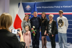 – Inspektor Tomasz Jarosz przywitał wszystkich zgromadzonych, szczególnie nowo przyjętych oraz ich bliskich. Dziękując za obranie drogi związanej z policyjnym mundurem, zwracał się także do rodzin nowo przyjętych, prosząc ich o wsparcie funkcjonariuszy w rozpoczętej służbie – mówi asp. Maciej Ślusarczyk z zespołu prasowego świętokrzyskiej policji.