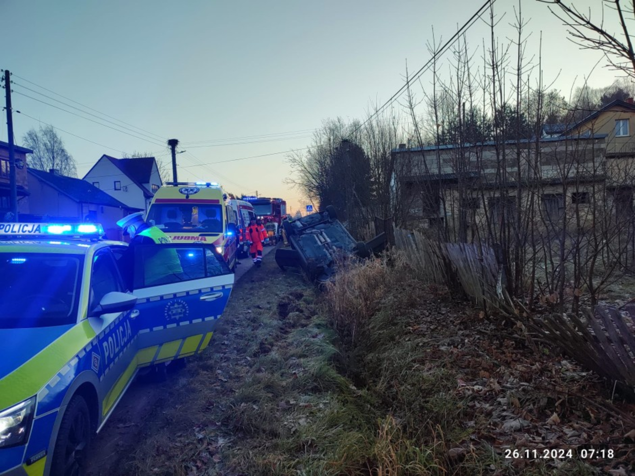 Trzy osoby trafiły do szpitala po dachowaniu samochodu w Nowej Słupi. Do zdarzenia dziś (26 listopada), o poranku.