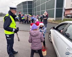 Mikołajkową akcję przeprowadzili dziś policjanci ze świętokrzyskiej drogówki wspólnie z uczniami ze Szkoły Podstawowej w Bilczy. Mundurowi wraz z dziećmi przypominali kierowcom o bezpiecznej jeździe: nagrodą za przestrzeganie przepisów był prezent, a karą… rózga.