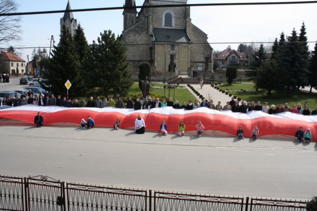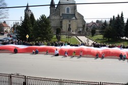 Prawie 30 metrów ma flaga Polski, którą zaprezentowali podczas happeningu odwołującym się do jubileuszu 100-lecia niepodległości i zbliżających się uroczystości 2 i 3 maja parafianie ze Skalbmierza.