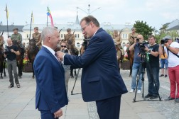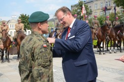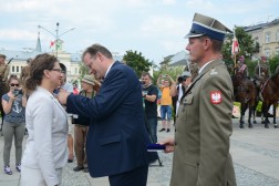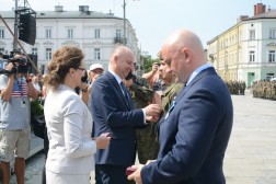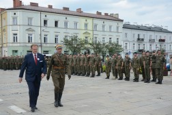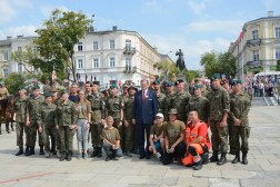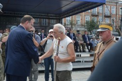 - Przyszliście tu, żeby nas powitać. Dziękuję za waszą obecność. Nasza droga do rozpoczęcia niepodległości, rozpoczęta każdego 6 sierpnia, trwa przez cały rok. Za chwilę się stąd rozejdziemy, ale w swoich miasteczkach i domach zawsze mamy krzewić pamięć o komendancie Piłsudskim i czynie 6 sierpnia - mówił komendant marszu, Dionizy Krawczyński. - Najważniejsza myśl, jaka towarzyszy od lat Marszom Szlakiem Pierwszej Kompanii Kadrowej brzmi: połączyć przeszłość z teraźniejszością i przyszłością. Kiedy byłem uczestnikiem marszu w 1993 roku, zapamiętałem chwilę modlitwy na cmentarzu jędrzejowskim, gdzie ówczesny komendant marszu powiedział do młodych strzelców: "Tu leżą wasi starsi koledzy". Ja te słowa zapamiętałem i będę pamiętał do końca życia, że my mamy tamto pokolenie strzeleckie traktować jako starszych kolegów, ale to jest naprawdę ogromne zobowiązanie, bo jeżeli możemy mówić o legionistach "koledzy", to znaczy, że mamy być wierni tym samym ideałom, którym byli wierni oni - powiedział minister Kasprzyk.
