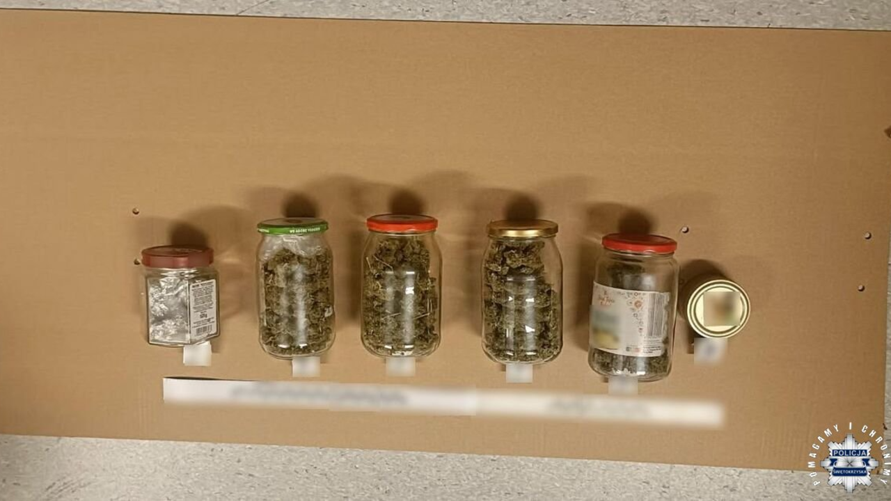 – Podczas ustalania okoliczności zdarzenia z kieszeni 40-latka wypadł szklany słoiczek. Jak się okazało, wewnątrz znajdował się zielony susz. W tej sytuacji charakter interwencji uległ zmianie. Policjanci zatrzymali mężczyznę i przeszukali zajmowane przez niego pomieszczenia – wyjaśnia nadkom. Anna Sławińska z KPP w Skarżysku-Kamiennej.