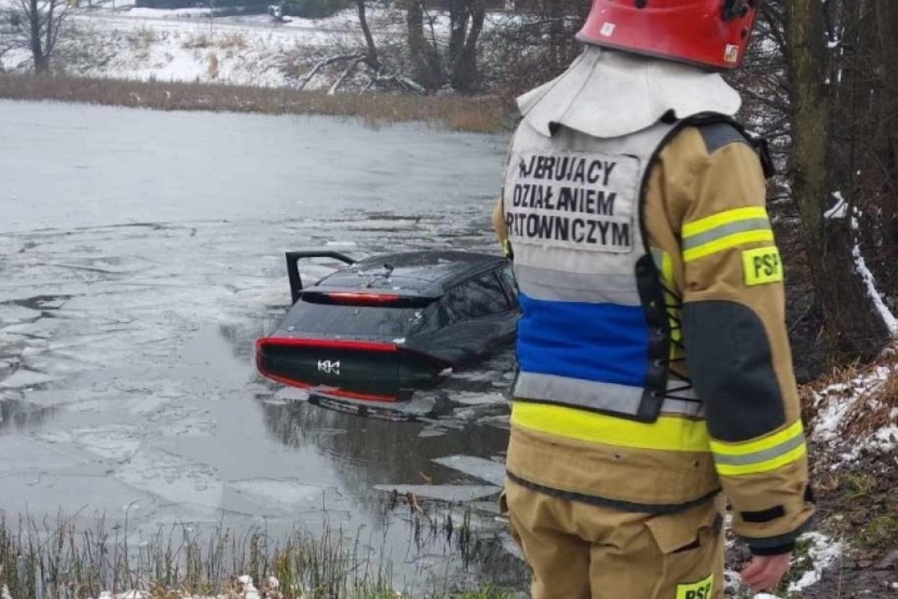 Niebezpieczny wypadek miał miejsce dziś (25 listopada), około godziny 11 w miejscowości Szabelnia. Do stawu wjechał kierowca osobowego auta.