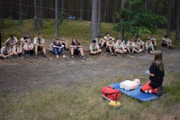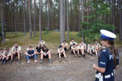 Strażacy nie tylko sprawdzili wszystkie niezbędne do zabezpieczenia obozowiska elementy takie jak gaśnice, ale także dokonali oceny próbnej ewakuacji, którą przeprowadzili harcerze. Wyniki kontroli wskazały, że obóz jest należycie zabezpieczony. – Wszystkie zainteresowane podmioty wypracowały pewne zasady. Oprócz tego, że kontrolujemy, staramy się również uświadamiać harcerzy o ich obowiązkach – tłumaczył młodszy brygadier Mariusz Góra, zastępca Komendanta Miejskiego Państwowej Straży Pożarnej w Kielcach. Wśród odwiedzających obozowisko była również policja i służby medyczne, które przedstawiły młodym ludziom zasady bezpieczeństwa i udzielania pierwszej pomocy.